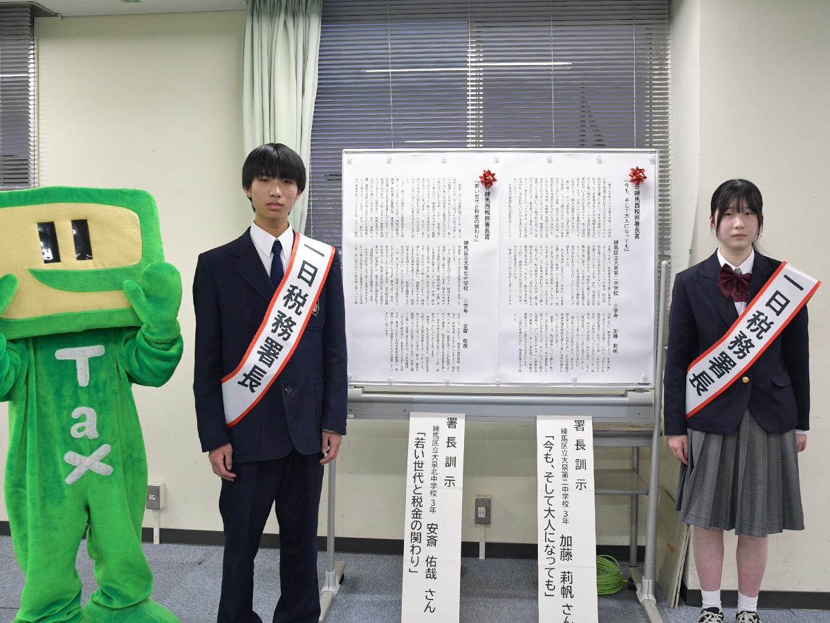 練馬西税務署で中学生が「一日税務署長」 作文コンクール受賞で