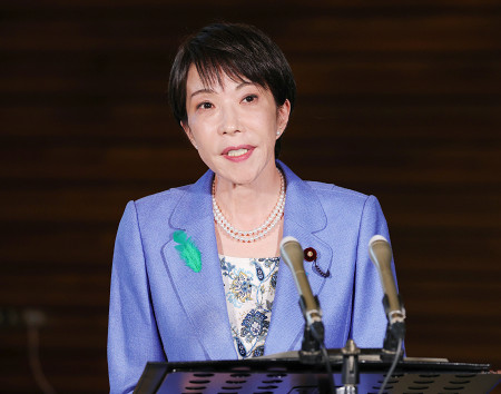 高市早苗首相は13日、パキスタンのシャリフ首相と電話会談し、イラン情勢を巡り協議した。早期の事態沈静化とホルムズ海峡の安定回復に向け、協力していくことで一致。写真は、取材に応じる高市首相=首相官邸 【時事通信社】