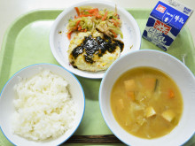 両日に提供したキャベツは、区内で収穫し当日朝に出荷した合わせて4350キロ。献立は各学校の栄養士が野菜の特徴を生かして考えた。区立大泉学園緑小学校では12日、「ねり丸キャベツのつくね」、野菜のごまあえ、キャベツと生揚げのみそ汁を提供した。