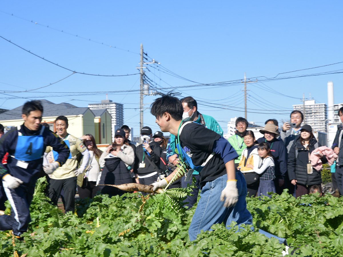 「練馬大根引っこ抜き競技大会」が12月7日、練馬区立「高松みらいのはたけ」(練馬区高松2)で行われた。