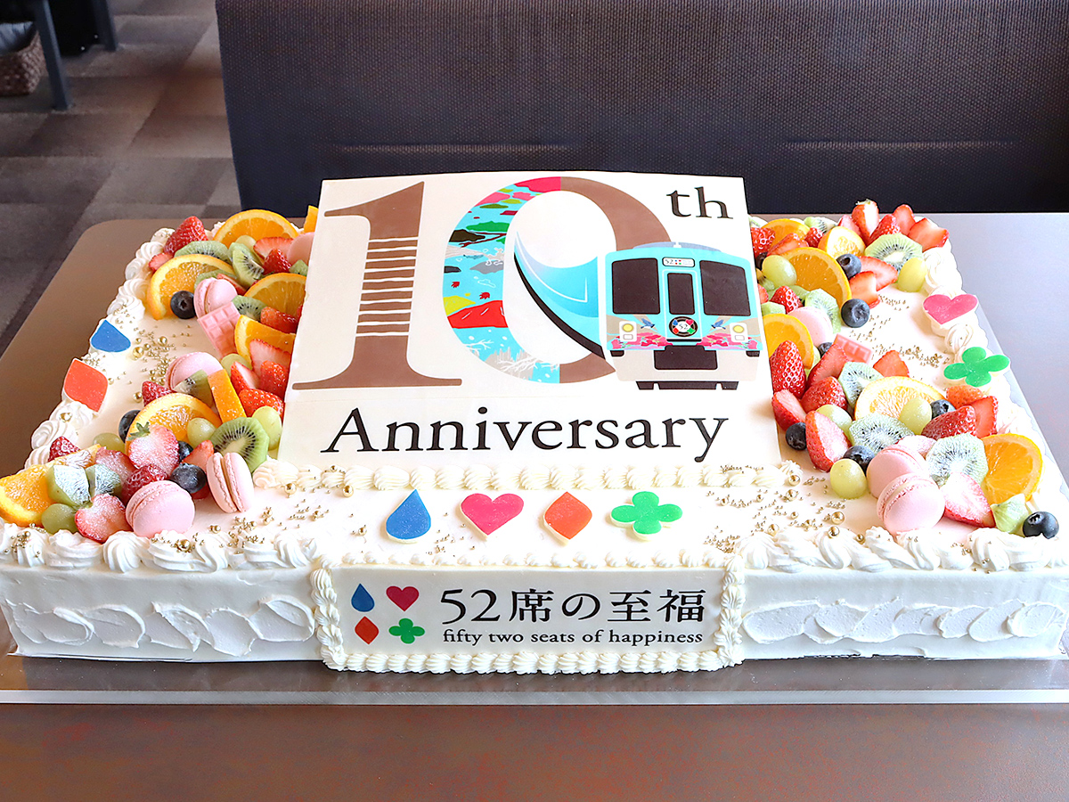 10周年記念ロゴマーク入りの大きな記念ケーキ(写真提供=西武鉄道)