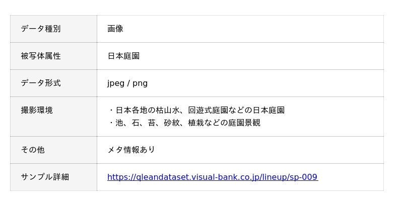 Visual Bank株式会社(東京都港区、代表取締役CEO 永井真之)は、傘下の株式会社アマナイメージズを通じて展開するAI学習用データソリューション「Qlean Dataset(キュリンデータセット)」にて、生成AIやマルチモーダル基盤モデルの開発・検証用途に向けた「日本庭園の画像データセット」の提供を開始しました。