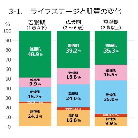 本調査により、犬のスキンケアを実施する際には犬の肌質を意識し、年齢に応じた適切なケアを選択することの重要性が示唆されました。